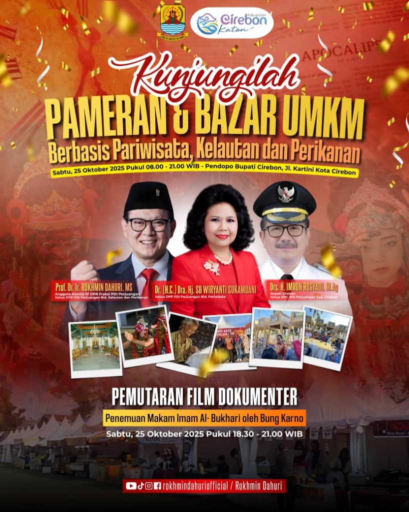 Ikhbar.com: Pemerintah Kabupaten Cirebon akan menggelar Pameran dan Bazar UMKM Berbasis Pariwisata, Kelautan, dan Perikanan pada Sabtu, 25 Oktober 2025, di Pendopo Bupati Cirebon, Jalan Kartini, Kota Cirebon. Acara berlangsung mulai pukul 08.00 hingga 21.00 WIB dan terbuka untuk umum.