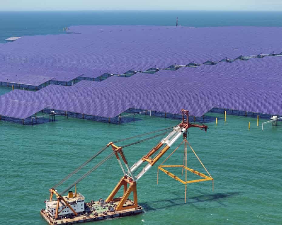Panel tenaga surya di lepas pantai provinsi Shandong, Cina. Foto: The Guardian