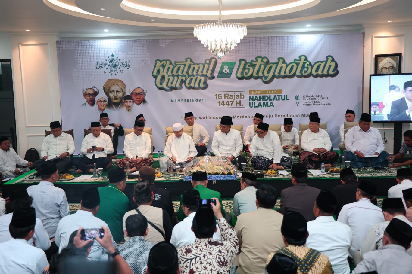 Ikhbar.com: Pengurus Besar Nahdlatul Ulama (PBNU) menggelar Khatmil Qur’an dan Istighosah dalam rangka memperingati Hari Lahir (Harlah) Ke-103 Nahdlatul Ulama pada Senin, 5 Januari 2026 atau bertepatan dengan 16 Rajab 1447 H.