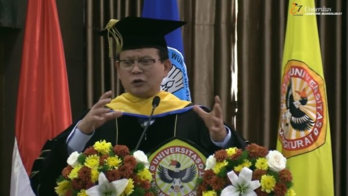 Pita menjadi simbol ikatan yang merangkul perbedaan tanpa memisahkan, sedangkan cakrawala melambangkan keluasan pandangan, keterbukaan terhadap dunia, dan visi jauh ke depan.