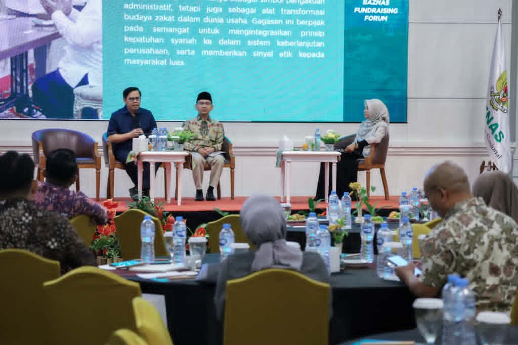Pimpinan Baznas Bidang Pengumpulan, Rizaludin Kurniawan (kiri) saat menjelaskan fungsi label taat zakat dalam forum Baznas Fundraising Forum di Jakarta, pada Selasa, 30 September 2025. Foto: Dok. Baznas