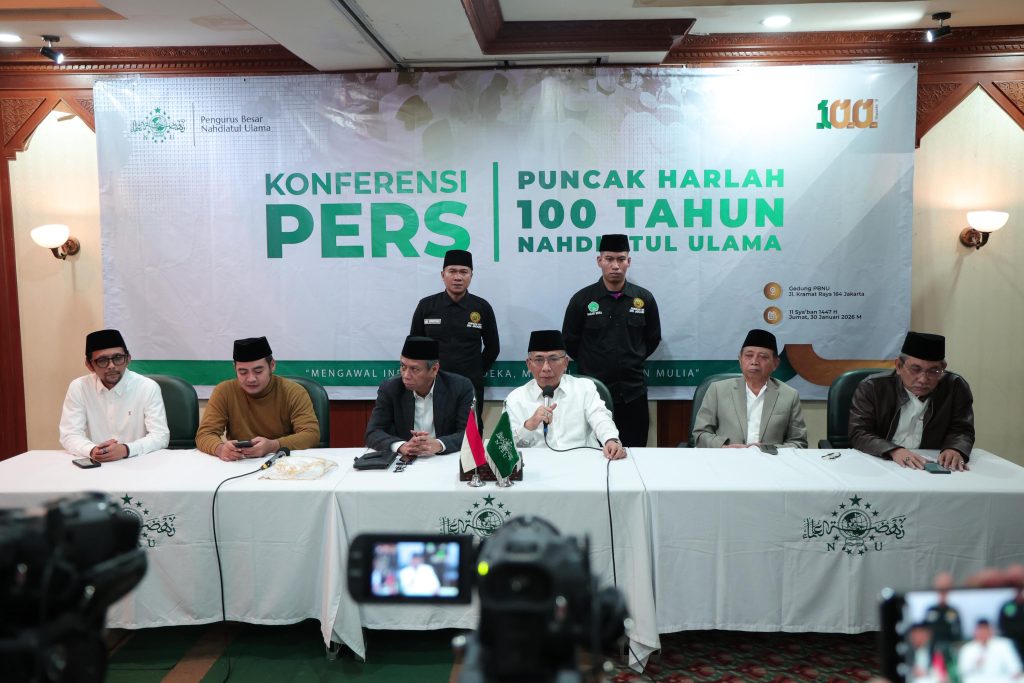 “Pada kesempatan itu juga, salah seorang Rais Syuriyah, Pak Muhammad Nuh juga menyerukan kepada semuanya untuk bisa hadir berpartisipasi di dalam puncak resepsi peringatan harlah 100 tahun Nahdlatul Ulama menurut kalender Masehi ini, yaitu besok pagi jam 9:00 pagi,” ujar sosok yang akrab disapa Gus Yahya itu saat konferensi pers di Gedung PBNU, Jalan Kramat Raya 164, Jakarta, Jumat, 30 Januari 2026.