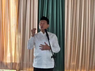 Prof. Rokhmin Dahuri saat menyampaikan ceramah pada acara Halal Bihalal PT Delapan Delapan Logistik dan lamaran Evif–Nafisyah, di Kuningan, Jawa Barat, Selasa, 24 Maret 2026. Dok IST