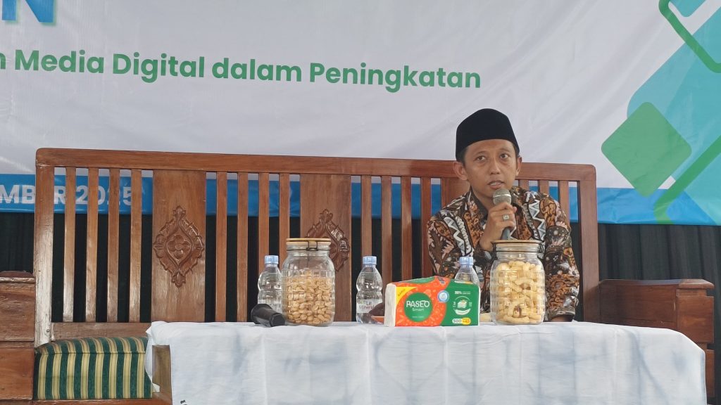 “Maka sebagai santri tentunya menghadapi dan mengikuti teknologi informasi dan medsos tidak bisa sembarang,” ujar Gus Syauqi di hadapan puluhan peserta.