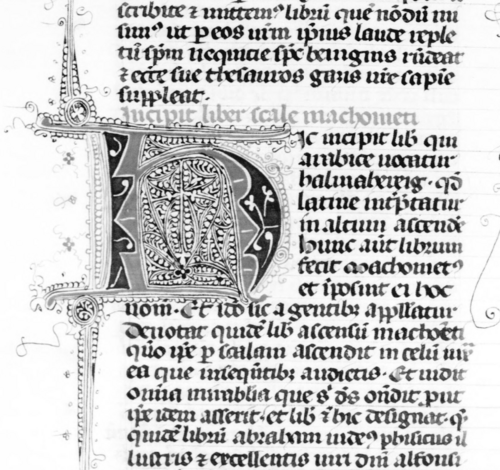 Liber Scalae Machometi merupakan karya sastra apokaliptik abad ke-13 yang memuat kisah perjalanan malam (Isra) dan kenaikan Nabi Muhammad Saw ke langit (Mikraj) secara rinci. Berdasarkan pengantar naskah, karya ini bersumber dari teks berbahasa Arab berjudul “Al-Miraj” yang diduga sebagai kompilasi hadis. Teks tersebut kemudian diterjemahkan atas perintah Raja Alfonso X dari Kastilia di Toledo.