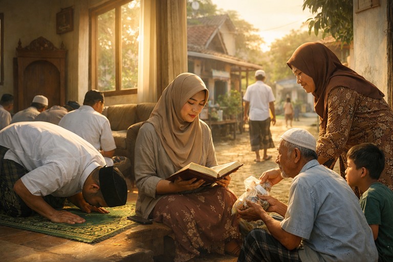 Kedua, Ramadan melatih keikhlasan. Ibadah seperti puasa tidak selalu terlihat orang lain, sehingga menjadi ruang paling jujur antara hamba dan Tuhan. Dari situ, orientasi amal diarahkan agar bersih dari pamrih.